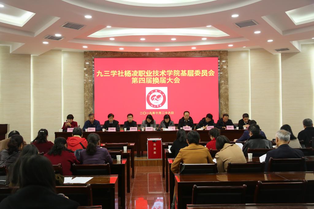 10月26日上午,九三学社杨凌职业技术学院基层委员会第四届委员换届大会举行。学院党委书记陈宁,九三学社杨凌示范区工委主委赵敏娟,九三学社中央委员唐德瑞、姜志德,九三学社杨凌职院基层委员会第三届领导班子成员及全体社员参加会议。