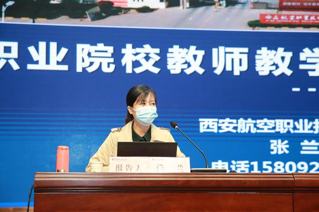 本次培训会特邀2019年全国职业院校技能大赛教师教学能力比赛一等奖(第1名)获得者、西安航空职业技术学院副教授张兰作题为《职业院校教师教学能力比赛解析》的专题讲座。为扩大参加本次会议的覆盖面,结合疫情防控的需要,本次培训同时采用网络现场直播的方式面向全体教师开放,全院共有500余名教师通过网络聆听了本次培训讲座。