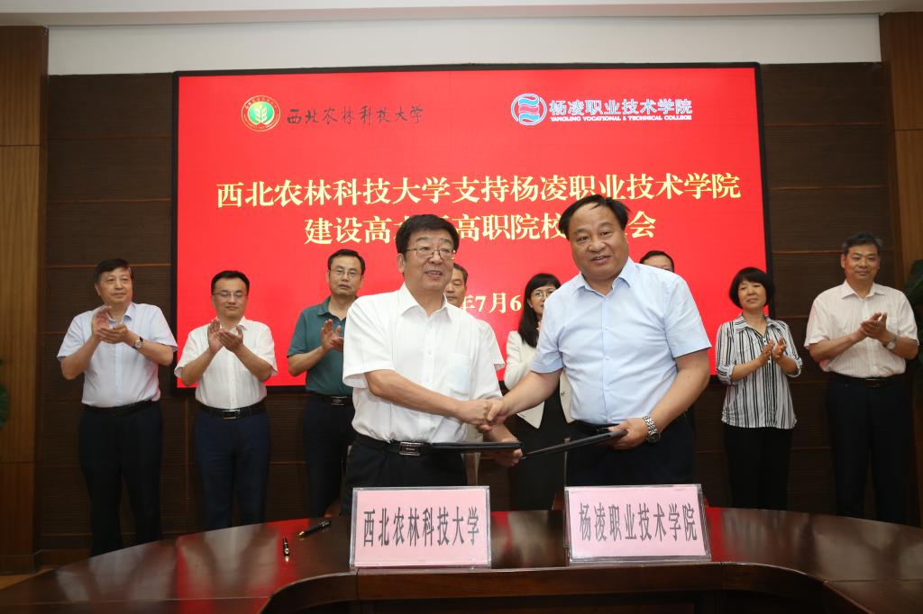 7月6日下午,西北农林科技大学支持我院建设高水平高职院校推进大会举行。西北农林科技大学党委书记李兴旺,校长吴普特,中国工程院院士康振生、张涌,副校长马建华;我院党委书记陈宁,院长王周锁,党委副书记任得元,党委副书记、纪委书记刘粉莲,副院长张迪、祝战斌出席大会。大会由西北农林科技大学党委副书记吕卫东主持。