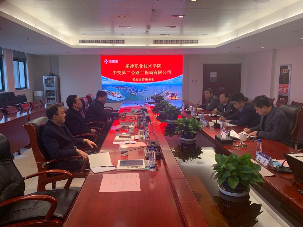 11月25日上午,学校党委副书记任得元带领招生就业处处长袁军儒、交通与测绘工程分院党总支书记陈军峰一行赴中交第二公路工程局有限公司走访调研,开展产教融合型企业合作洽谈。中交二公局人力资源部副总经理柴兆红、梁文平等5人参加了座谈调研会。