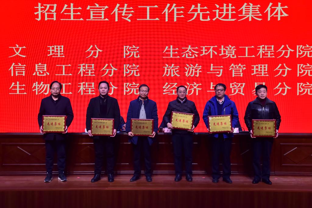 会上,任得元对2020年招生宣传、就业创业工作进行总结汇报介绍了招生就业工作的具体做法和完成的任务,分析了我校招生就业工作面临的挑战和存在的问题,并对2021年招生就业工作进行安排部署。招生就业处处长袁军儒宣读了《关于表彰2020年度招生宣传和就业创业工作先进集体和先进个人的通报》与会领导为获奖的先进集体进行了颁奖。文理分院和水利工程分院分别代表招生宣传和就业创业工作先进集体进行了经验交流发言。