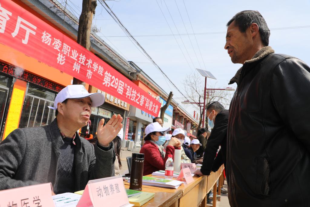 当天,由陕西省教育厅主办,杨凌职院、彬州市共同承办的第29届“科技之春”宣传月活动启动仪式在彬州市新民镇举行。陕西省教育厅科技处处长朱晓冬、省科技厅农村科技处副处长王德喜、彬州市委副书记谢蓉、杨凌职业技术学院副校长祝战斌等参加启动仪式。