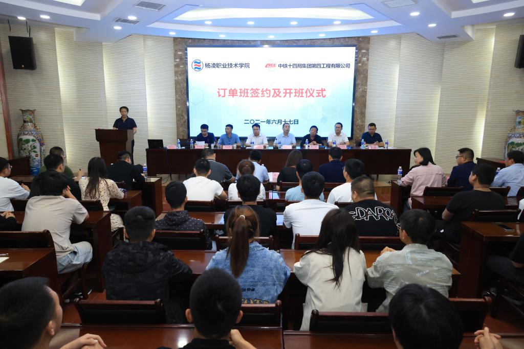 徐宇杰简要介绍了中铁十四局四公司的招聘情况,他表示,通过与杨凌职业技术学院联合设立订单班,有利于企业吸纳更多优秀人才,实现校企双方互利共赢。中铁十四局四公司将认真履行企业职责,与校方共建共享,为培养出更多高素质技术技能人才贡献力量。