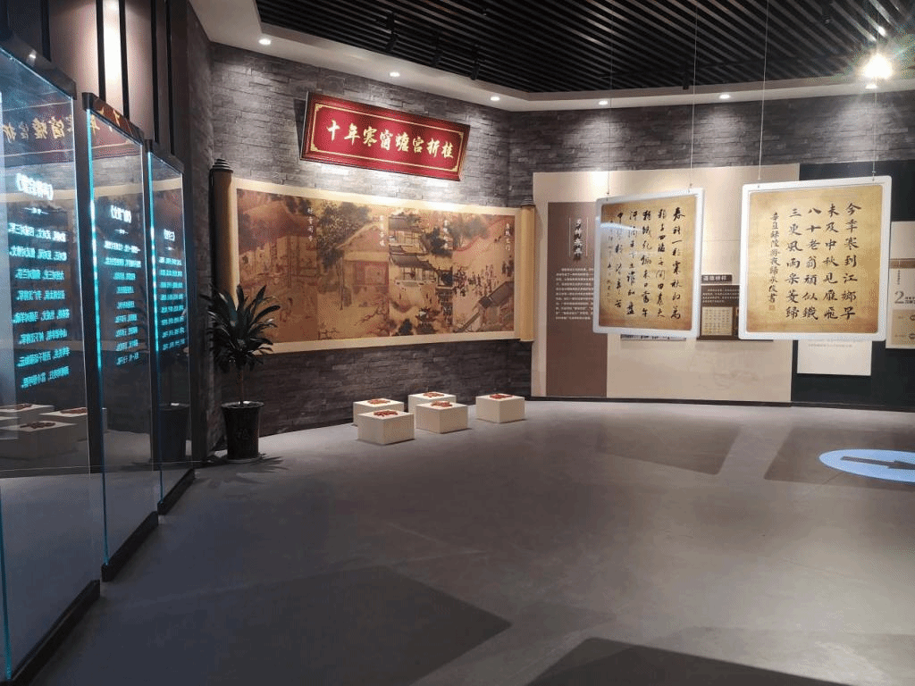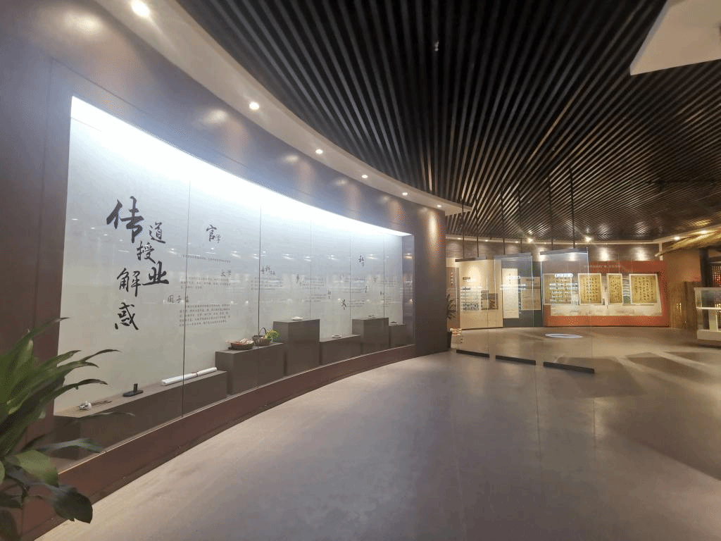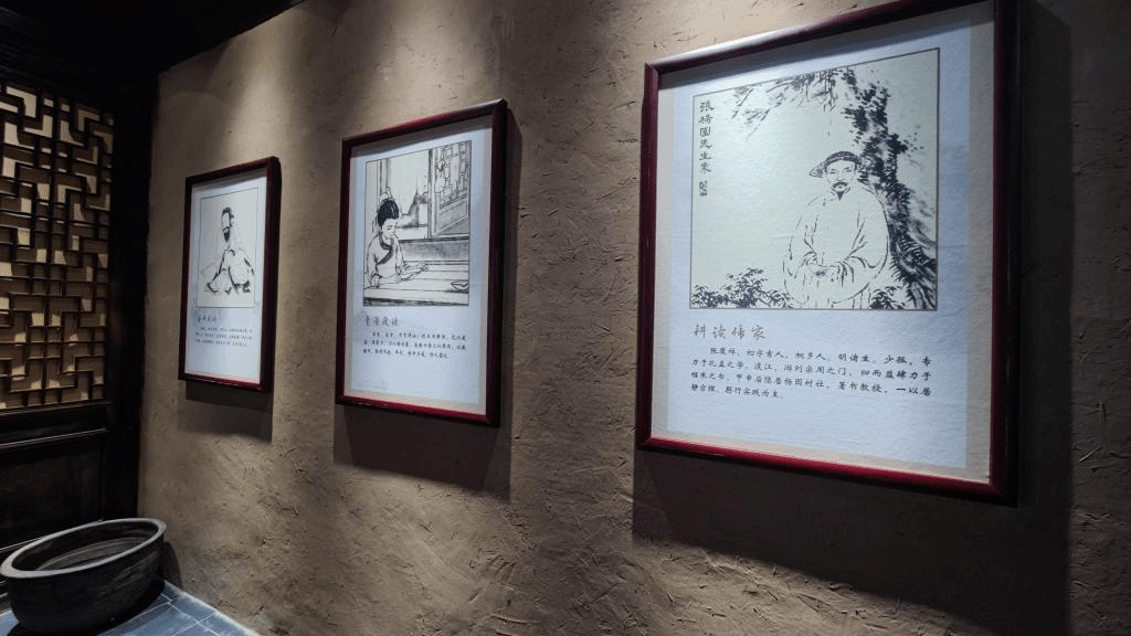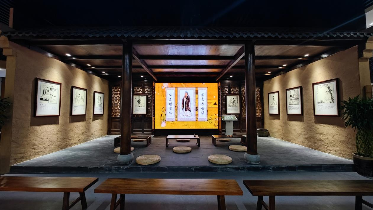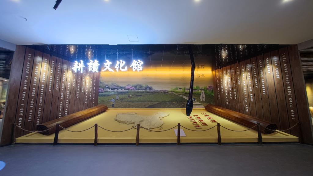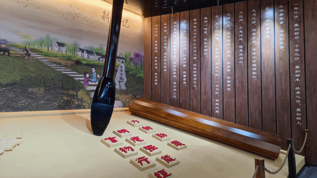 力耕勤读展厅作为展馆中的重点部分,以古木深色营造出了厚重的历史文化氛围,从言传身教、学字知事、边耕边读、乡绅表率、职业教育五个部分,系统展示了耕读文化的历史发展和文化传承。