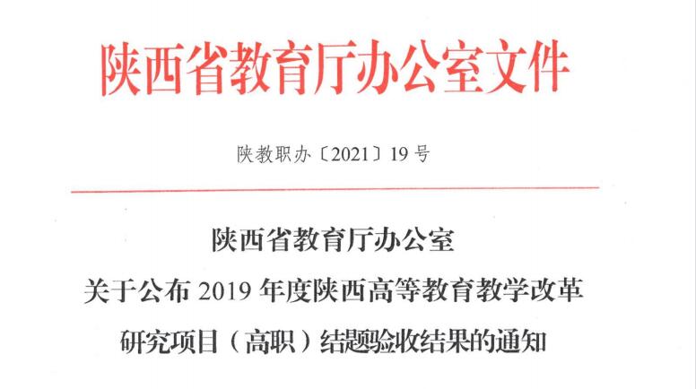 10月25日,省教育厅公布2019年度陕西高等教育教学改革研究项目(高职)结题验收结果,学校7个项目通过结题验收。