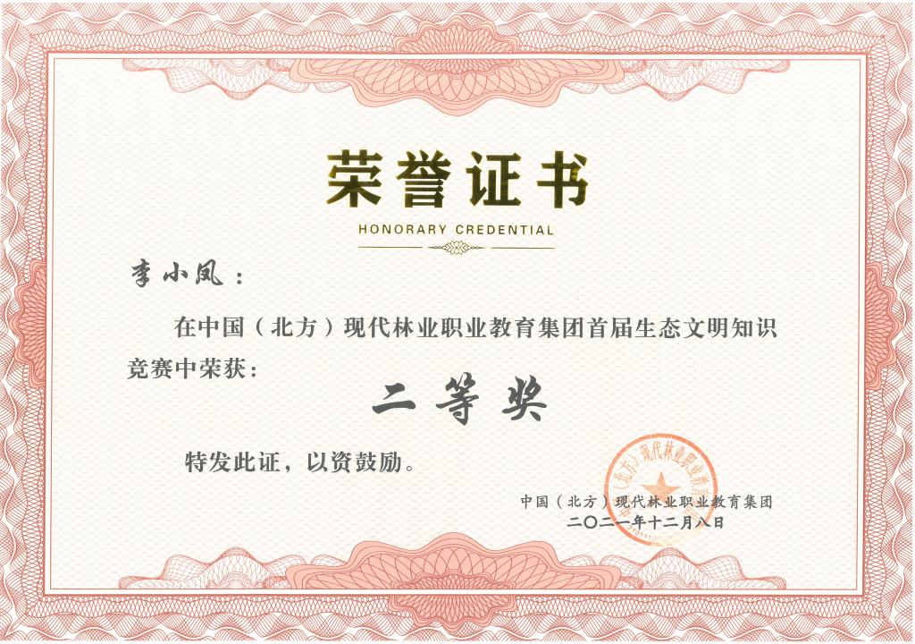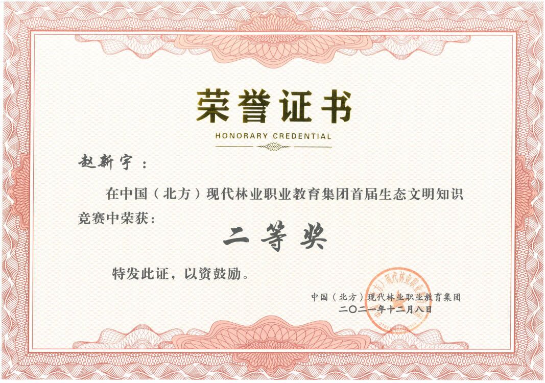 11月25日至30日,中国(北方)现代林业职业教育集团举办首届生态文明知识竞赛活动。学校生态环境工程学院教师赵新宇、白燕茹以及学生李小凤均荣获二等奖。