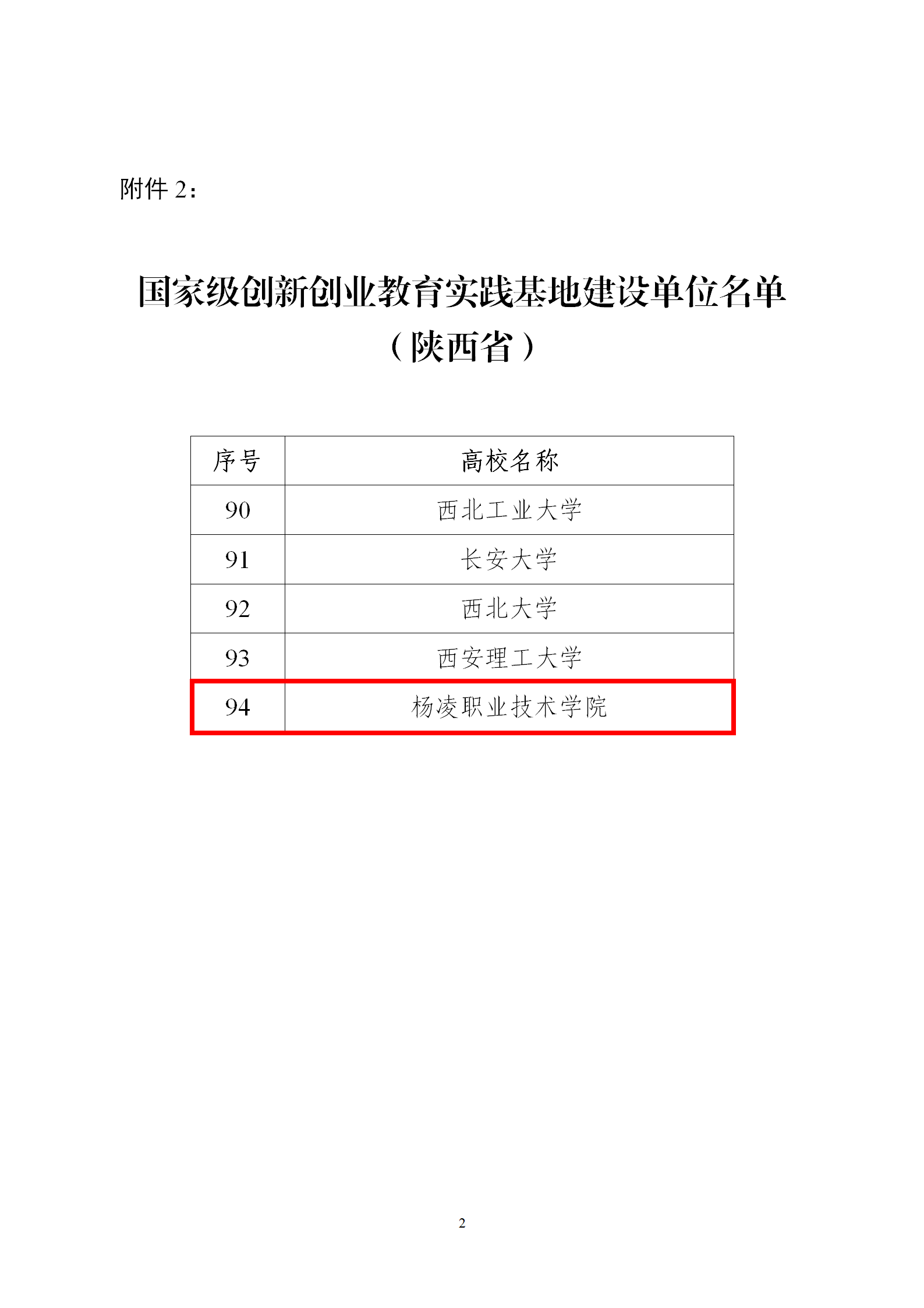 8月31日,教育部公布了国家级创新创业学院、国家级创新创业教育实践基地建设名单,杨凌职业技术学院入选国家级创新创业实践基地立项建设单位,为陕西省唯一入选的高职院校。
