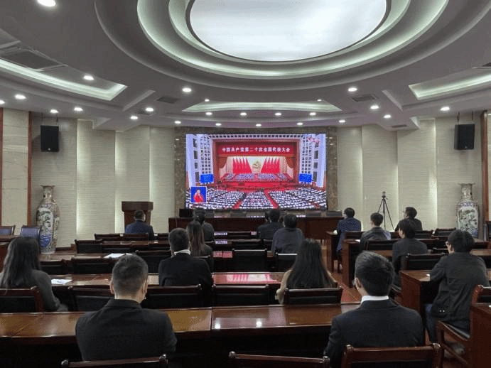 10时整,在南校区208会议室,学校党委理论学习中心组成员、各部门负责人,准时收看党的二十大开幕会,认真聆听习近平总书记所作报告。各党总支、直属党支部以党总支或党支部为单位,组织全体党员干部、教职工和思政课教师收看党的二十大开幕会。学工部、团委组织广大学生通过电视、网络、手机等方式,就近就便同步收听收看党的二十大实况直播。