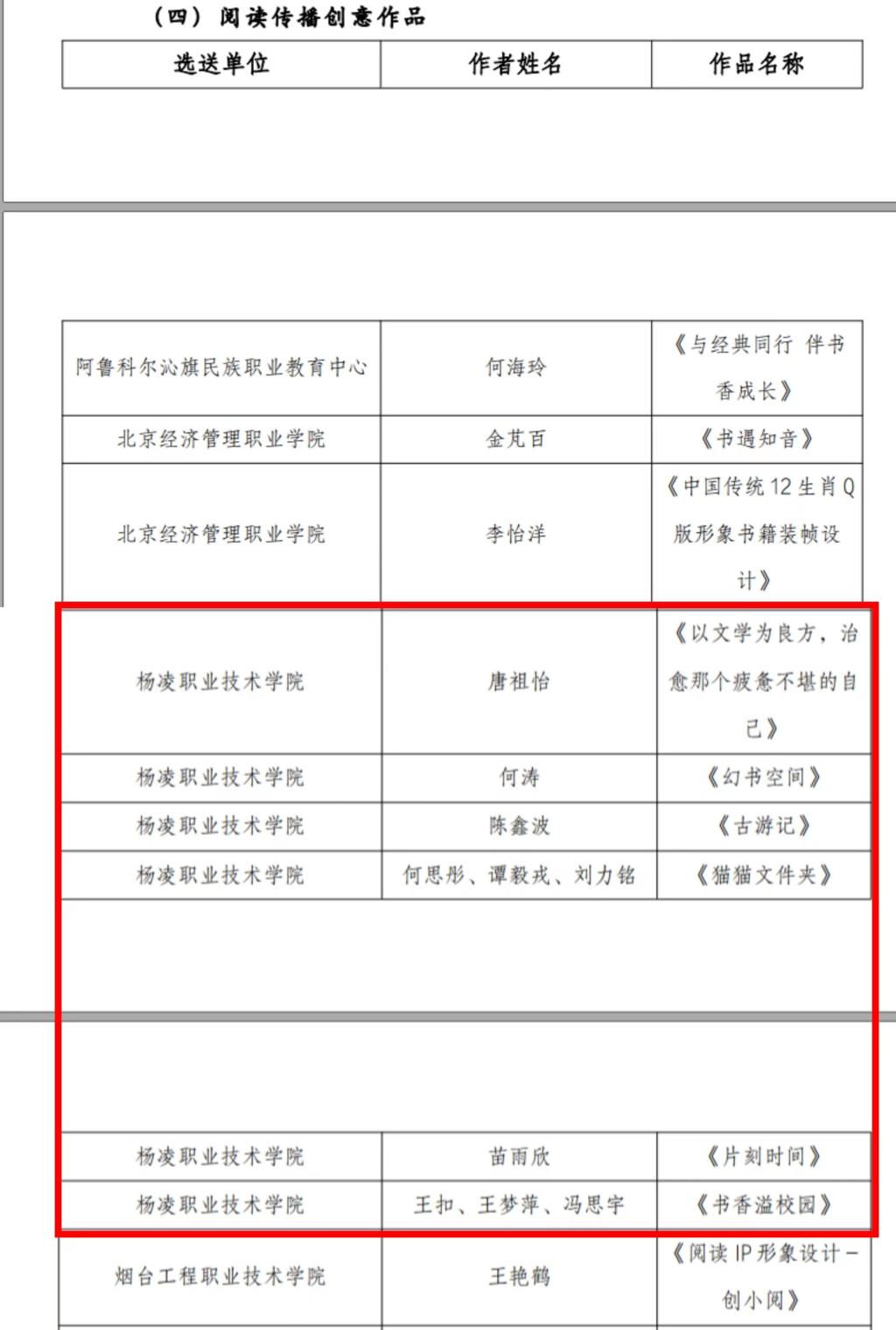 近日,2022年全国职业院校阅读文化创意设计展示活动获奖名单公布。我校获优秀组织单位;选送的作品入选“阅读传播示范作品”1件、“阅读传播创意作品”6件;生态环境工程学院教师王花蕾获优秀指导老师。