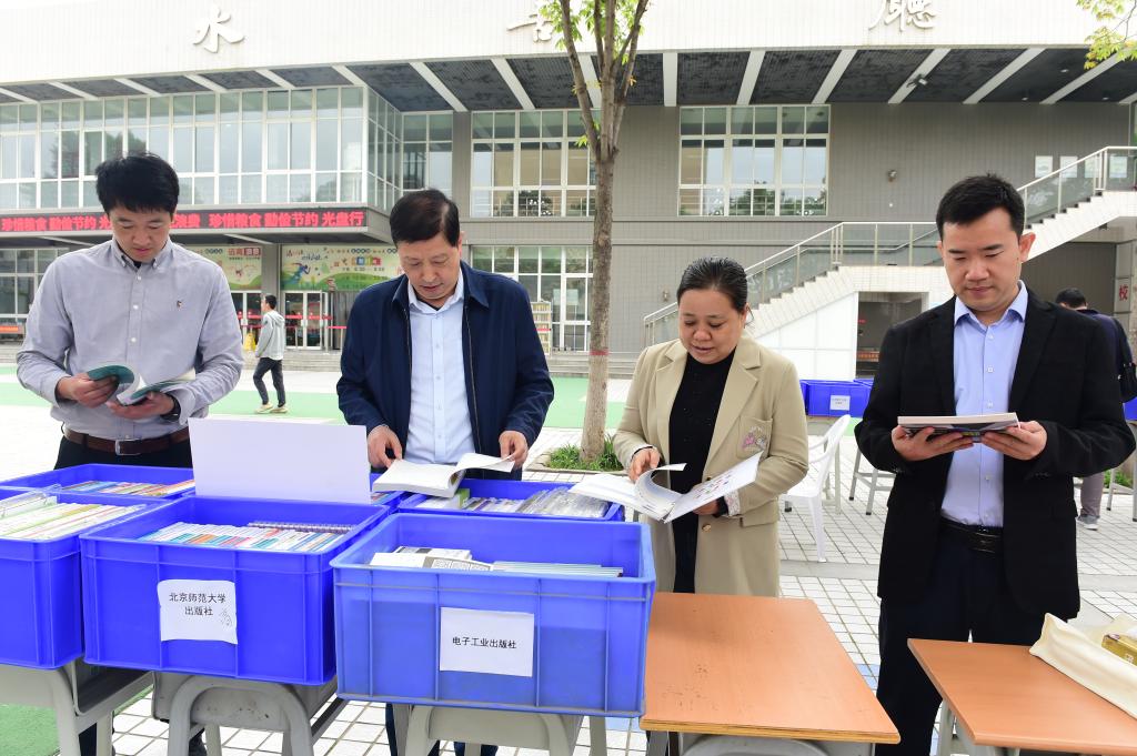 4月17日,学校在南校区举办教材捐赠暨精品教材展示活动,来自40余家出版社的近1300种教材进行了展出。党委副书记、纪委书记王勇胜,副校长祝战斌,教务处、马克思主义学院负责人参加本次活动。
