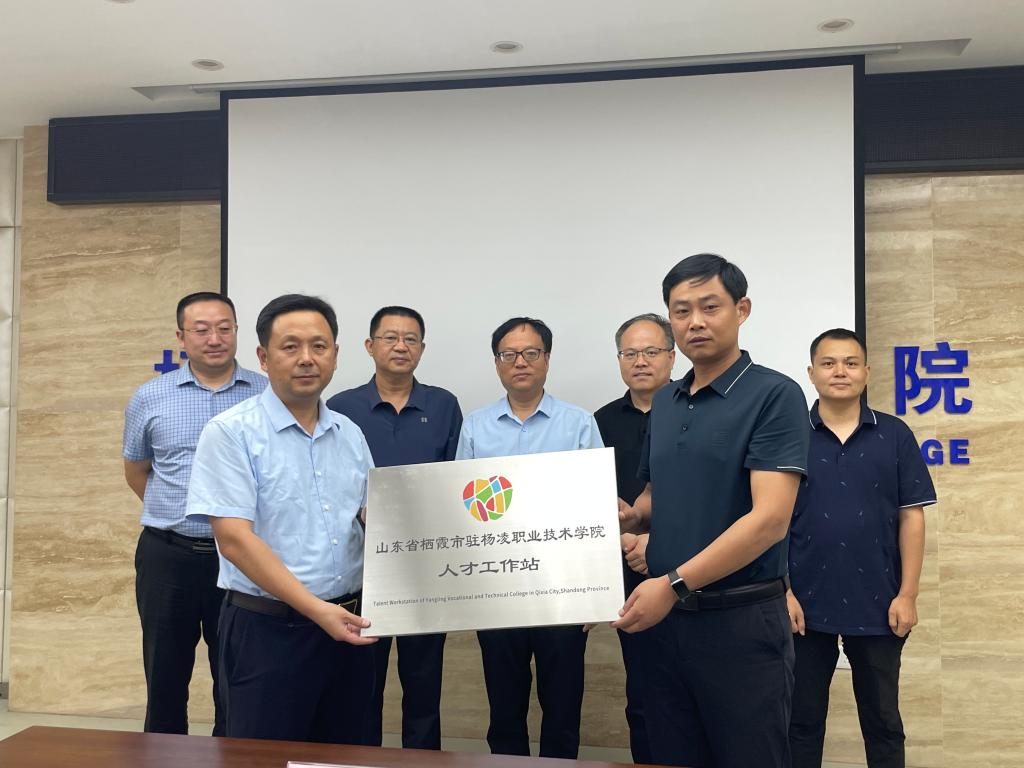 会上,吴高潮与栖霞市人社局党组书记刘盛田签订了校地战略合作协议,信息工程学院学工办主任任争峰作为驻杨凌职业技术学院人才工作站第一任站长接受了刘盛田的授牌。