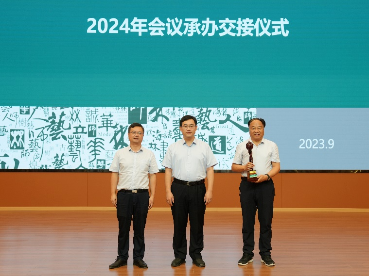 会议期间进行了“全国林业职业院校协作会杯”交接仪式,在全国林业和草原职业教育教学指导委员会副秘书长于宁的主持下,我校与江西环境工程职业学院进行了年度会议承办单位交接,王周锁代表学校接过了标志杯,下届全国林业职业院校协作会年度会议将于2024年在我校举行。