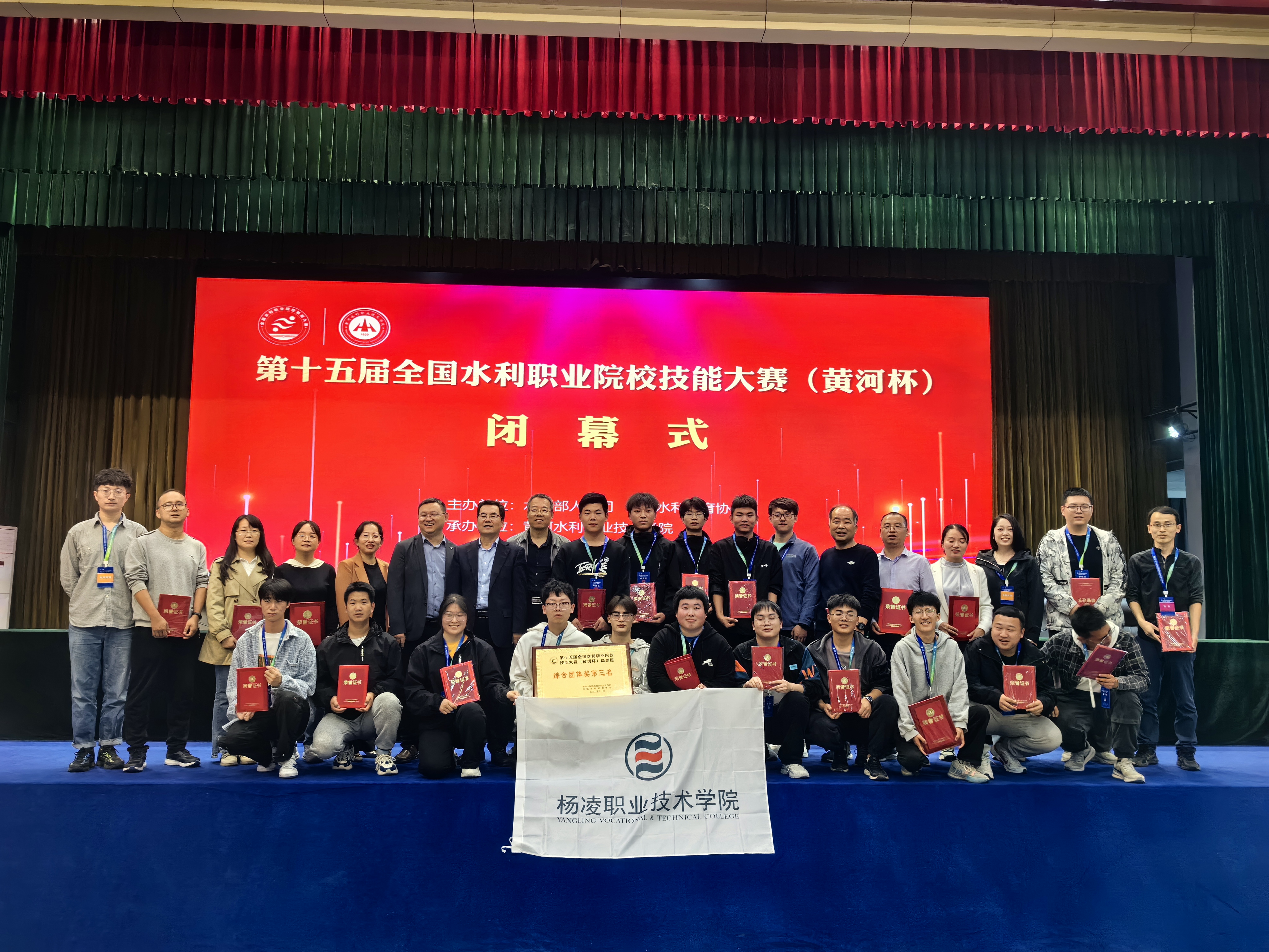 10月12日至14日,由水利部人事司、中国水利教育协会主办的第十五届全国水利职业院校(黄河杯)技能大赛在黄河水利职业技术学院举行,共有38所职业院校、447名参赛选手、319名指导教师参与角逐。我校师生获大赛个人一等奖4项、单项团体奖3项,综合团体奖第三名。