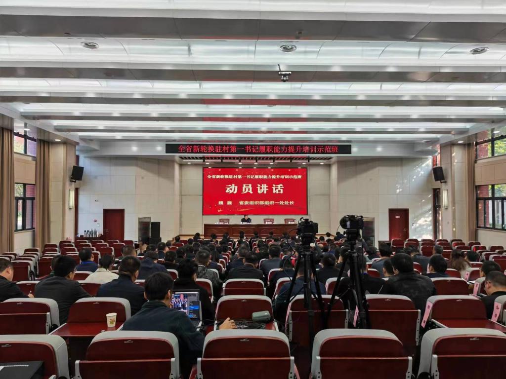 10月23日上午,全省新轮换驻村第一书记履职能力提升培训示范班在我校开班。省委组织部组织一处处长魏巍,省委组织部二级调研员许谋,杨凌示范区党工委委员、组织部部长田晓炜,我校副校长胡俊鹏等出席开班仪式。来自中央、省、市、县四级新轮换第一书记130余名代表参加培训示范班。开班式由许谋主持。