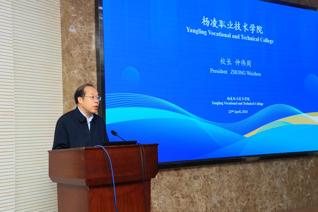 4月22日上午,学校在南校区举办“分享职教标准,促进国际合作”主题活动。校长仲伟周出席活动并讲话,杨凌示范区外事办主任马静、副主任张学明出席活动,2024年发展中国家公共基础设施项目融资与管理研修班官员,以及我校国际合作交流处、水利工程学院、建筑工程学院、交通测绘工程学院和机电工程学院等部门和分院负责人参加活动。