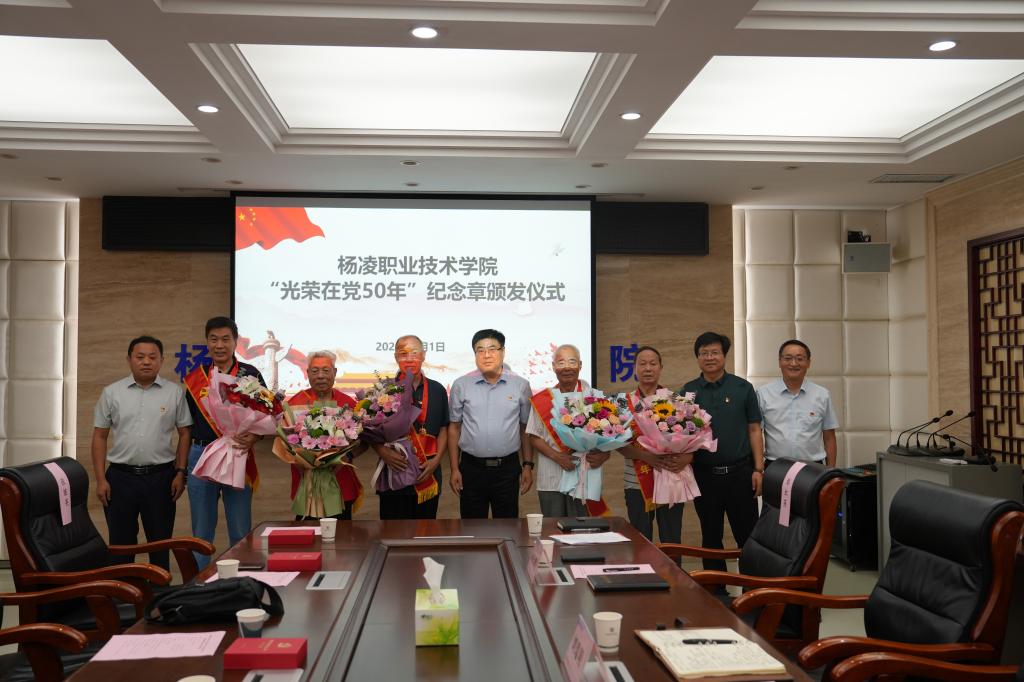 为庆祝中国共产党成立103周年,7月1日上午,学校举行“光荣在党50年”纪念章颁发仪式。党委副书记刘瑞明, 党委委员、组织部部长田争运,党委委员、宣传部部长裴红波出席活动。