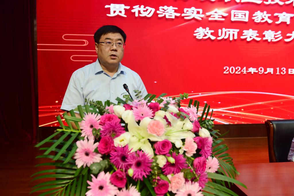 会上,与会人员集中学习了习近平总书记在全国教育大会上的重要讲话精神。大会宣读了学校《关于颁发“光荣从教30年”纪念章及荣誉证书的决定》和《关于对2023年以来成绩突出团队和个人表扬的决定》。