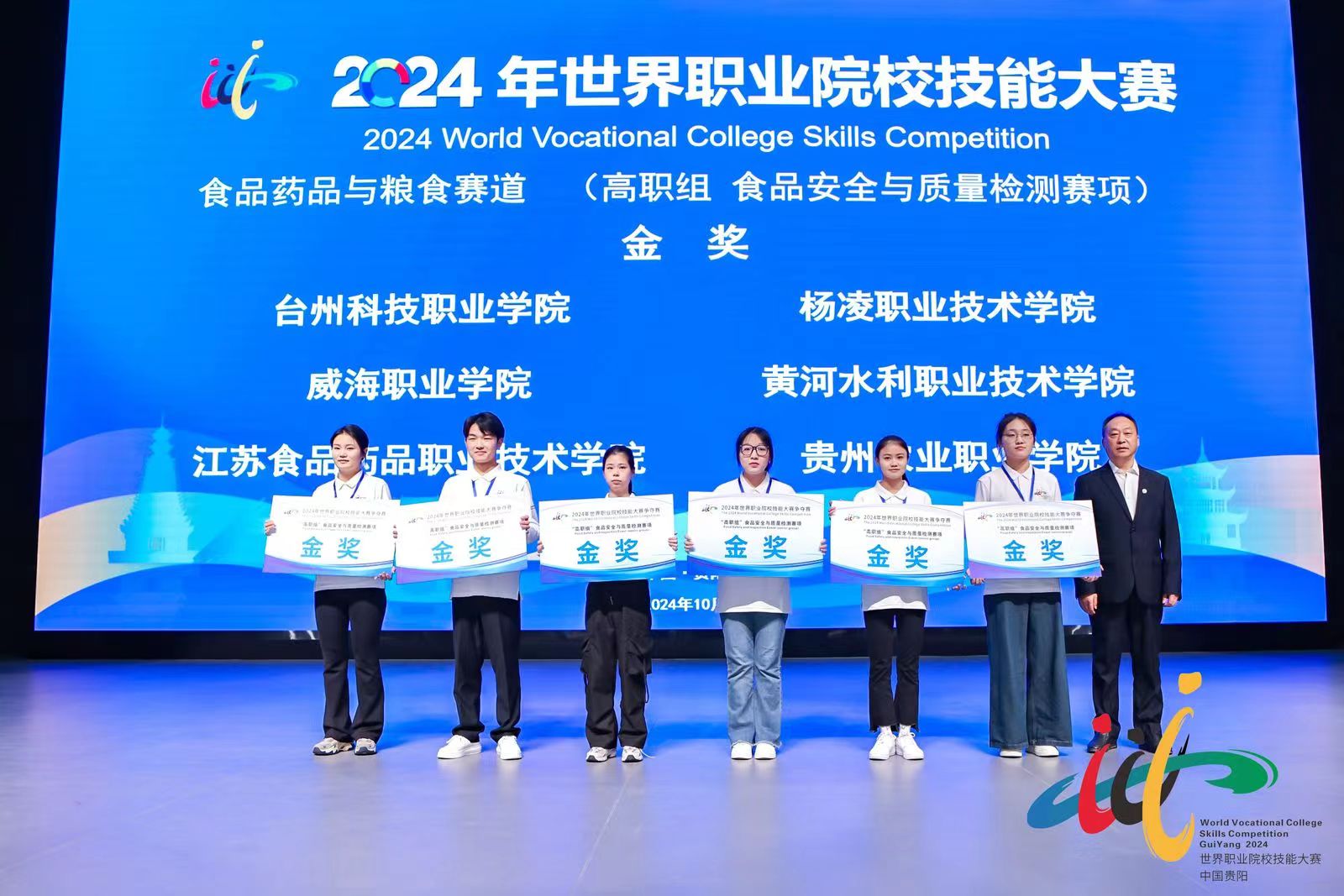 10月25日至30日,2024年世界职业院校技能大赛高职组食品药品与粮食赛道“食品安全与质量检测”赛项争夺赛在贵州农业职业学院成功举办,共有来自全国27个省、自治区、直辖市的61支代表队200余名师生参赛。由我校生物工程学院张红娟、崔利辉老师指导,杜晶晶、刘蕊华同学组成的代表队以卓越的现场发挥和扎实的专业技能操作勇夺金奖,位列小组第一名。