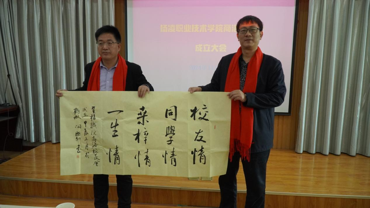 蒋平江向校友会授牌,宣告杨凌职业技术学院商洛校友会成立。西安交大校友会代表、商州区文旅局副局长张晓平致贺词。崔学民、闵朋利、张军利向学校赠送了书画作品。学校和商洛校友会分别向商州区图书馆捐赠图书100余册。王周锁表示,学校为商洛地区尤其是涉农领域培养了大批优秀人才,希望商洛校友会发挥好桥梁纽带作用,带动各行业校友为学校和商洛发展再建新功。
