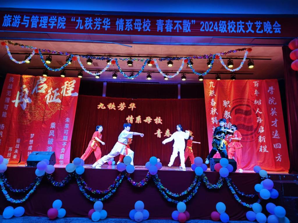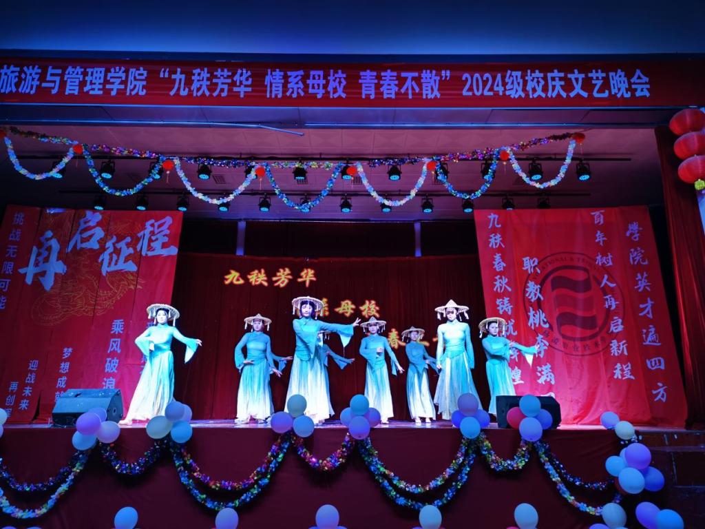 11月17日晚,旅游与管理学院举办“九秩芳华 情系母校 青春不散”主题校庆文艺晚会。旅游与管理学院、文理学院负责人,旅游与管理学院教师代表、辅导员、班主任和2024级全体新生共计300余人参加。