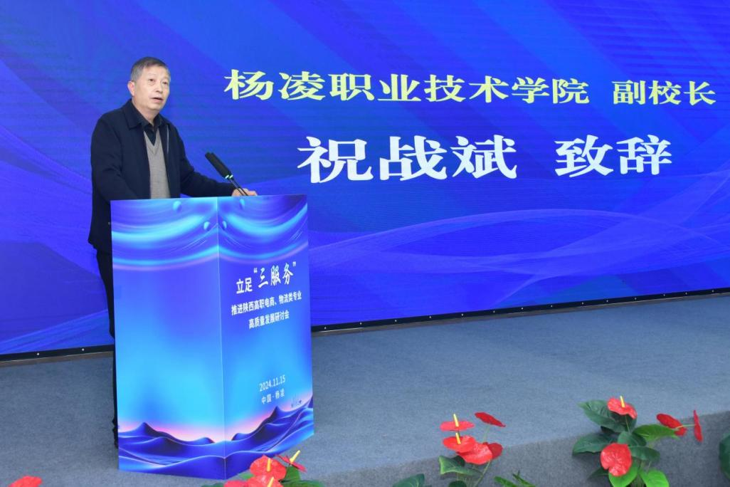 祝战斌在致辞中对与会嘉宾长期以来对学校的关心支持表示感谢,介绍了学校的办学特色、发展历程和电商物流类专业近些年所取得的成绩。他希望研讨会的召开,为各校在职业教育和电商物流类专业建设发展方面的经验和做法搭建充分交流的平台,对积极培育发展新质生产力,构建优质高效的服务业新体系,推动新时代服务业高质量发展和人才培育质量全面提升,适应现代化产业体系的建设需要产生积极的促进作用,共同为陕西省职业教育和产教融合出谋划策、贡献力量,更加有力推动陕西电商和物流专业行业职业教育高质量发展。