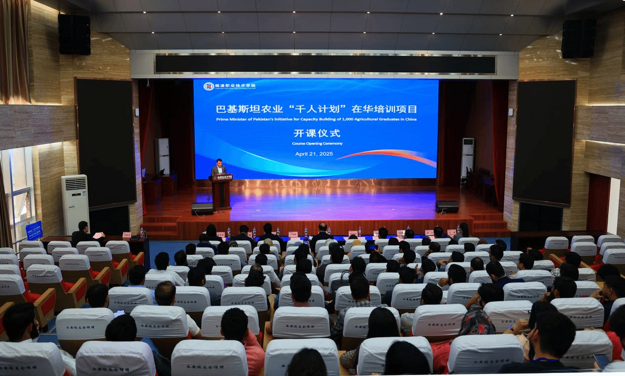 开课仪式上,仲伟周欢迎巴基斯坦百名学员来校学习,他介绍了学校在课程安排、教学计划、师资队伍、实训基地以及食宿等方面的安排,希望学员在中国学习期间平安健康、学有所获、学有所成。赛玛・瑙林希望学员们珍惜学习机会,学习中国先进的农业技术,更好服务巴基斯坦农业经济发展。“高效灌溉系统”班学员代表阿米尔・贾韦德、“种子生产加工技术”班学员代表穆罕默德・贾韦德分别发言。