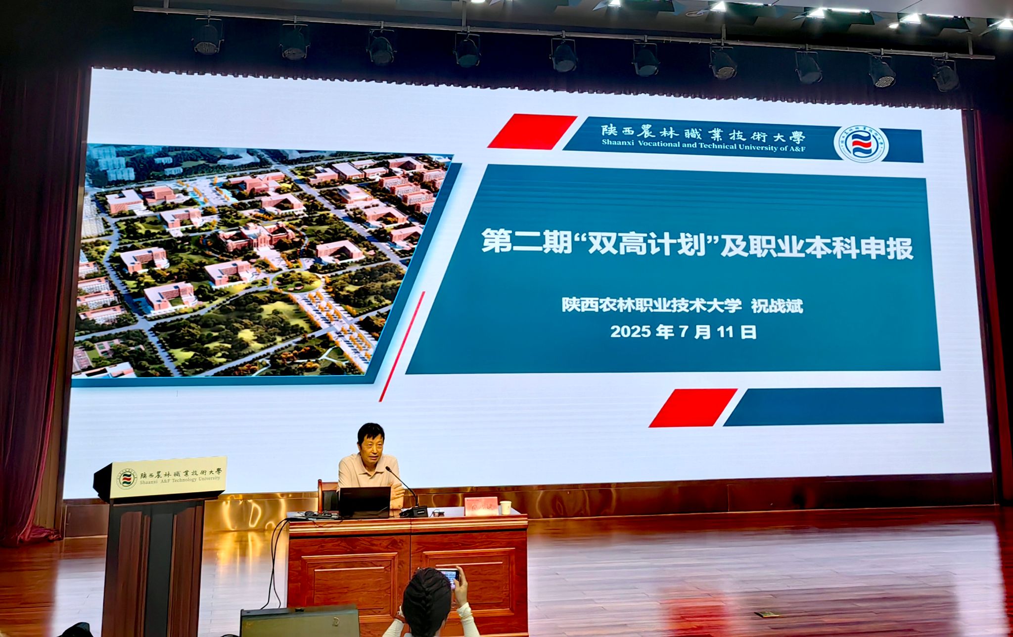 双方围绕校园规划建设、校园文化建设、干部能力提升、社会服务、新一轮双高建设及职业本科建设等方面进行了深入交流。祝战斌围绕“第二期双高计划及职业本科申报”主题作了专题报告。