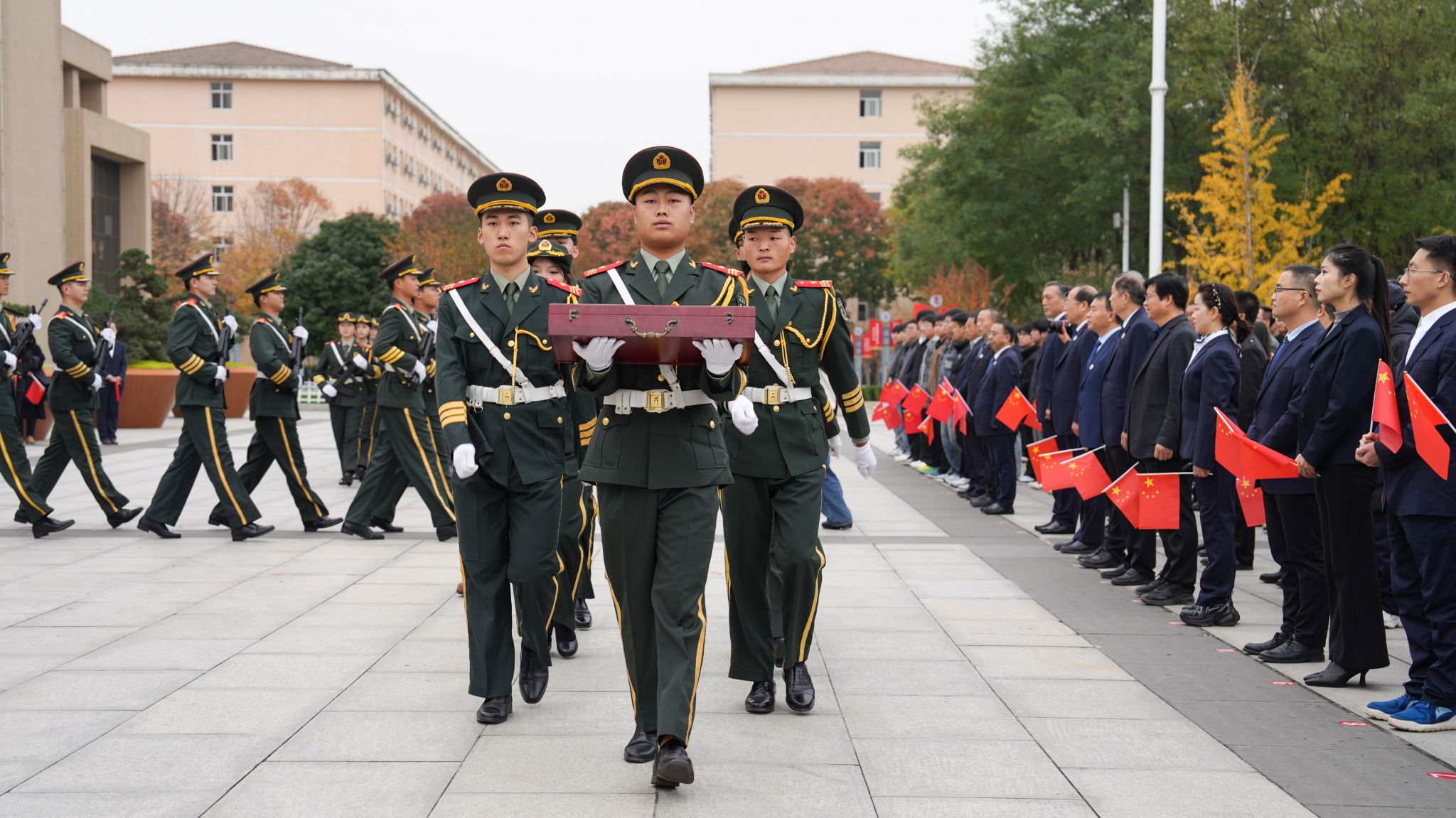 11月10日上午,学校在南校区醒钟楼广场举行迎接天安门国旗仪式。党委书记韩明军,校长仲伟周,党委副书记刘瑞明,党委副书记王勇胜,党委副书记、纪委书记、监察专员康强,副校长祝战斌、胡俊鹏出席仪式。学校党委委员、处科级干部、离退休教师代表、在职教师代表和学生代表,共计1000余人参加仪式。仪式由党委副书记刘瑞明主持。
