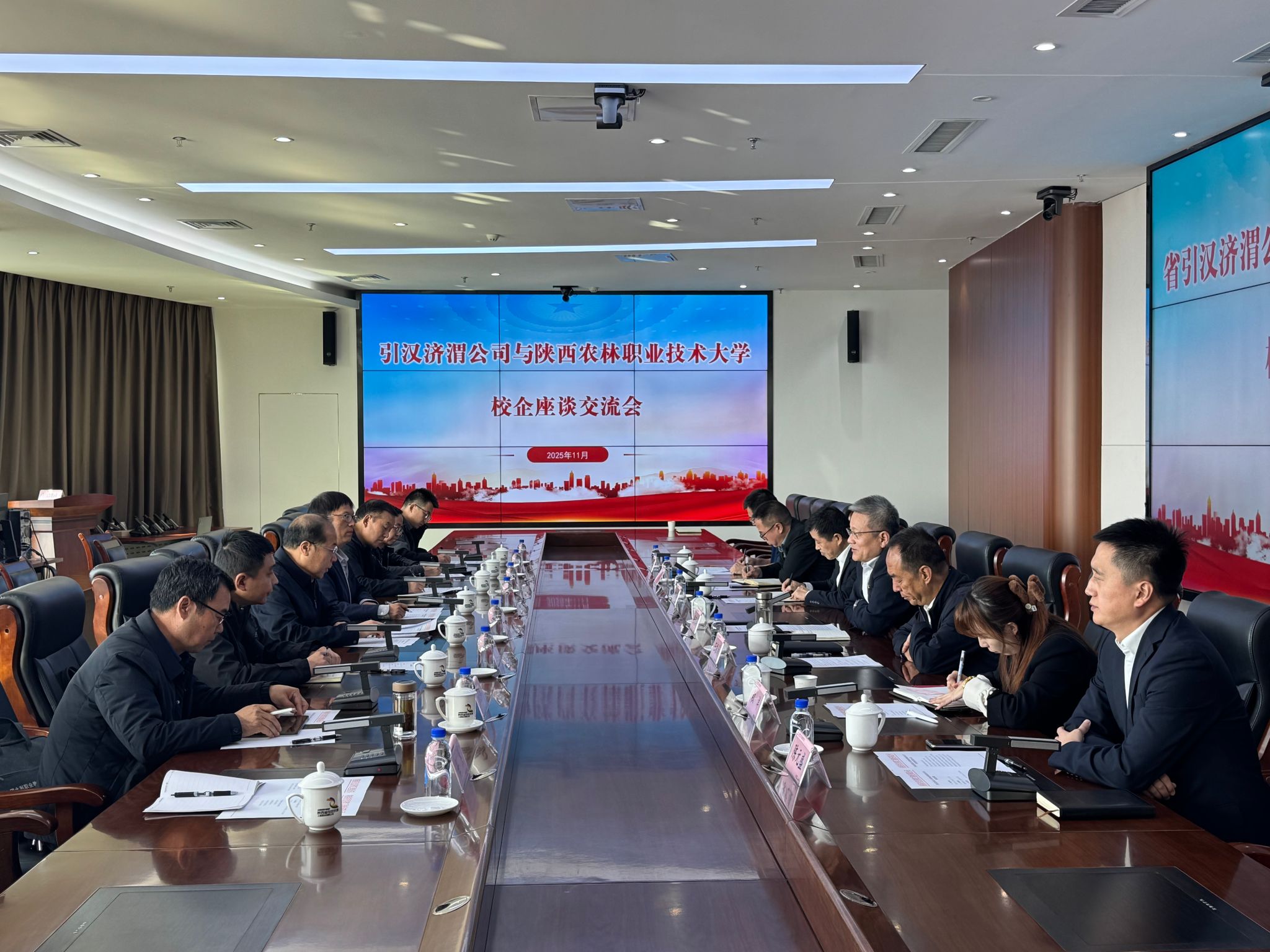 11月20日,校长仲伟周带队赴陕西水务发展集团有限公司开展访企拓岗活动,先后走访了集团下属黄河古贤水利枢纽开发有限公司、引汉济渭工程建设有限公司、东庄水利枢纽工程建设有限责任公司三家单位,并签署了校企合作协议。