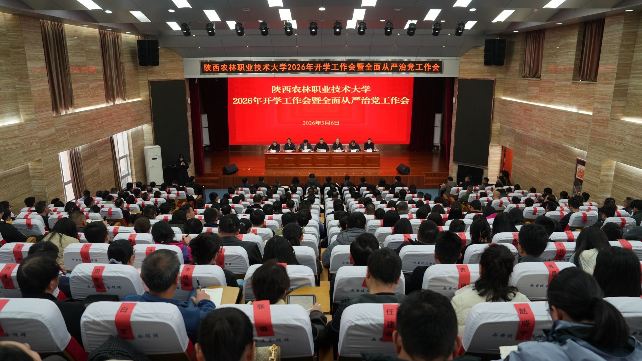 仲伟周指出,2025年是学校办学发展史上具有里程碑意义的一年,全校攻坚克难、团结奋进,成功升格为全省首所公办职业本科大学,顺利入选新一轮国家“双高校”,党建思政、人才培养、科研服务等各项工作取得突破性进展,为学校长远发展奠定坚实基础。2026年是“十五五”开局之年,也是学校奋进“双高建设”、推进高水平职业本科大学的关键之年,全校要紧扣中省教育工作部署和职教改革新要求,聚焦“六个确保”抓实抓细全年工作。他要求,一是要确保“十五五”规划开好局起好步,3月底前完成“1总10专14分”系列发展规划编制并做好宣传实施;二是确保国省“双高”建设、高水平职业本科大学建设、新校区建设使用三大攻坚见实效,确保新校区6月如期投用,年内力争20个职业本科专业招生并申报学士学位授予资格;三是确保师生大赛、科研、社会服务等标志性成果新突破,补齐国家级奖项短板,培育高水平智库资政成果;四是确保办学治校改革持续深化,推进职教教学关键要素、内部治理、师资队伍三大改革,构建与职业本科适配的制度体系;五是确保学校社会贡献度显著提升,聚焦农业科技、乡村振兴发力,深化产教融合,以“秦岭工坊”为抓手打造“职教出海”品牌;六是确保学校稳健良性可持续发展,抓实全面从严治党、教学基础、招生就业、健康学校建设、服务保障和安全稳定工作,筑牢学校发展根基。仲伟周强调,全校要迅速收心归位,以“开局即冲刺、起步即攻坚”的奋斗姿态,把各项部署落到实处,奋力推动学校高质量发展迈上新台阶。