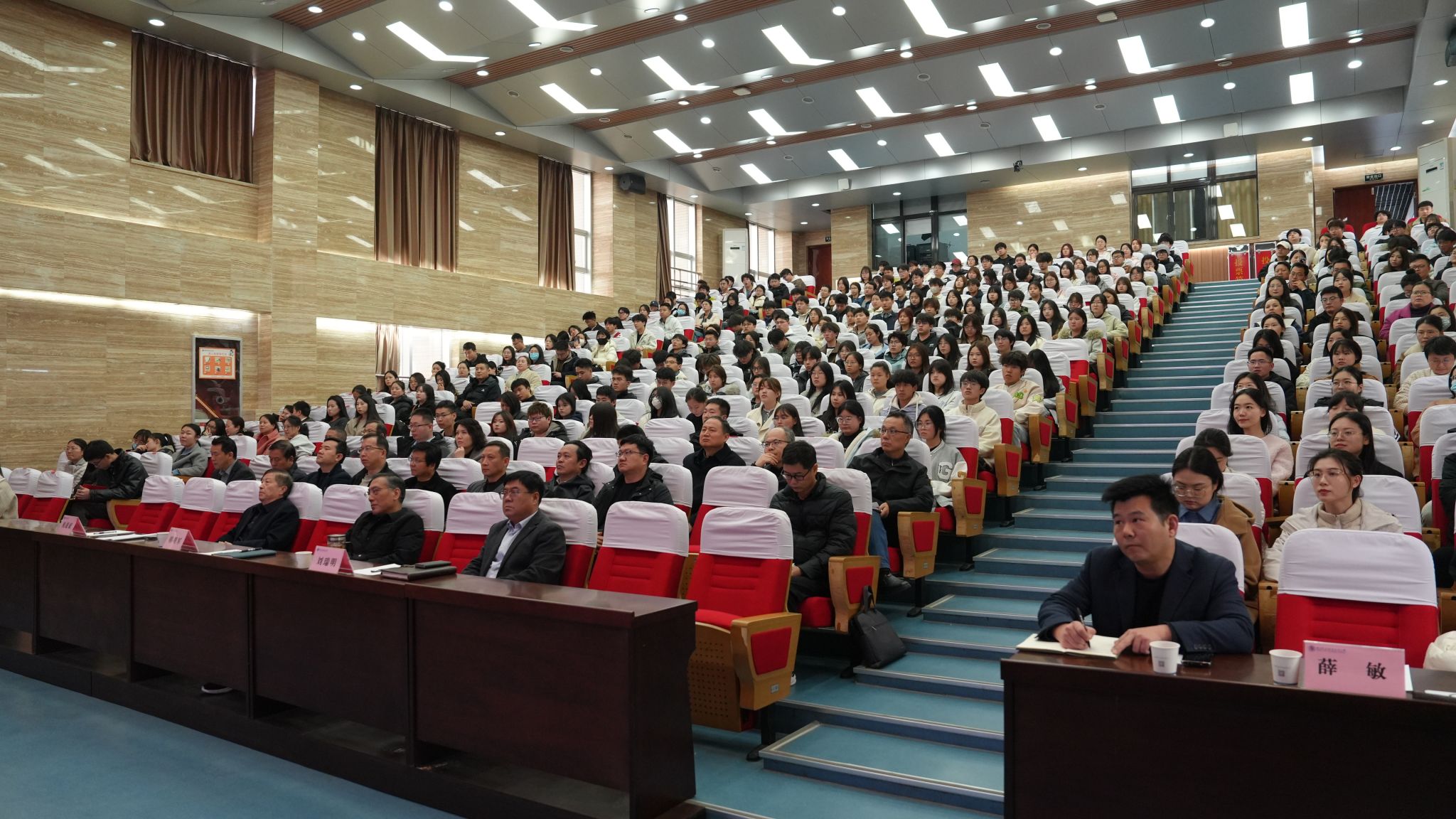 3月16日下午,学校举办陕西高校思政“金课”宣讲会,邀请陕西高校思政“金课”讲师团成员在校宣讲。党委书记韩明军、党委副书记刘瑞明、副校长祝战斌出席活动。党委(校长)办公室、党委组织部、党委宣传部、党委学工部、教务处、团委、马克思主义学院负责人,各学院(部)负责人、全体思政课教师、辅导员代表及学生代表共300余人参加活动。