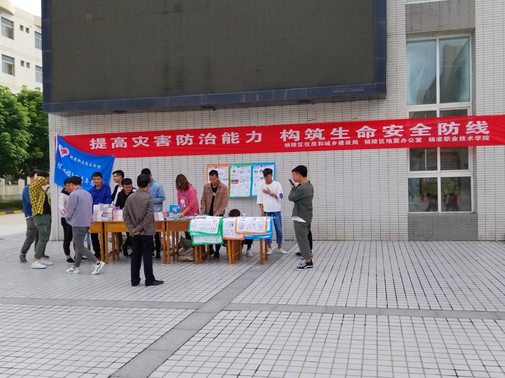 今年的5月12日是我国第11个全国防灾减灾日。为增强师生的灾害防治意识,5月9日,我院联合杨陵区住房和城乡建设局、杨陵区地震办公室开展了防灾减灾宣传活动。