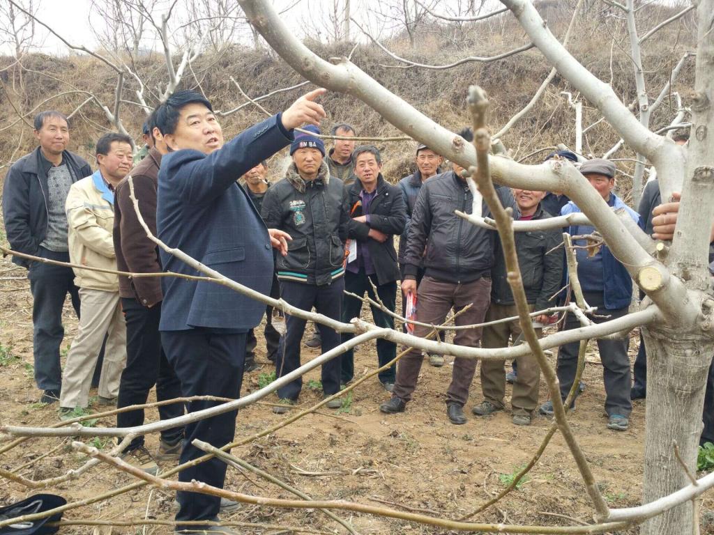 紫石崖村种植核桃已有十年,种植面积在千亩以上,但群众由于缺乏技术指导,一直未见效益。我院建立核桃产学研基地后,虽经几次培训,但群众积极性仍然不高。在总结以往农民产业培训经验的基础上,此次培训以注重实际操作、培养一支修剪技术队伍、建立示范园为重点。两位专家通过示范引导、对群众实际操作指导、总结提高、反复讲解练习实践的方法,修剪了约10亩示范园,使参加此次培训的28人基本掌握了核桃修剪、拉枝及嫁接技术。同时,马文哲教授还对后期灭菌喷药、施肥技术要点进行了讲解。