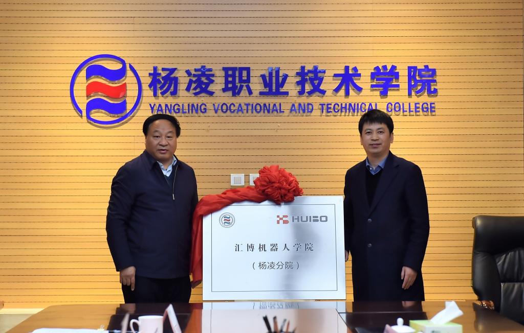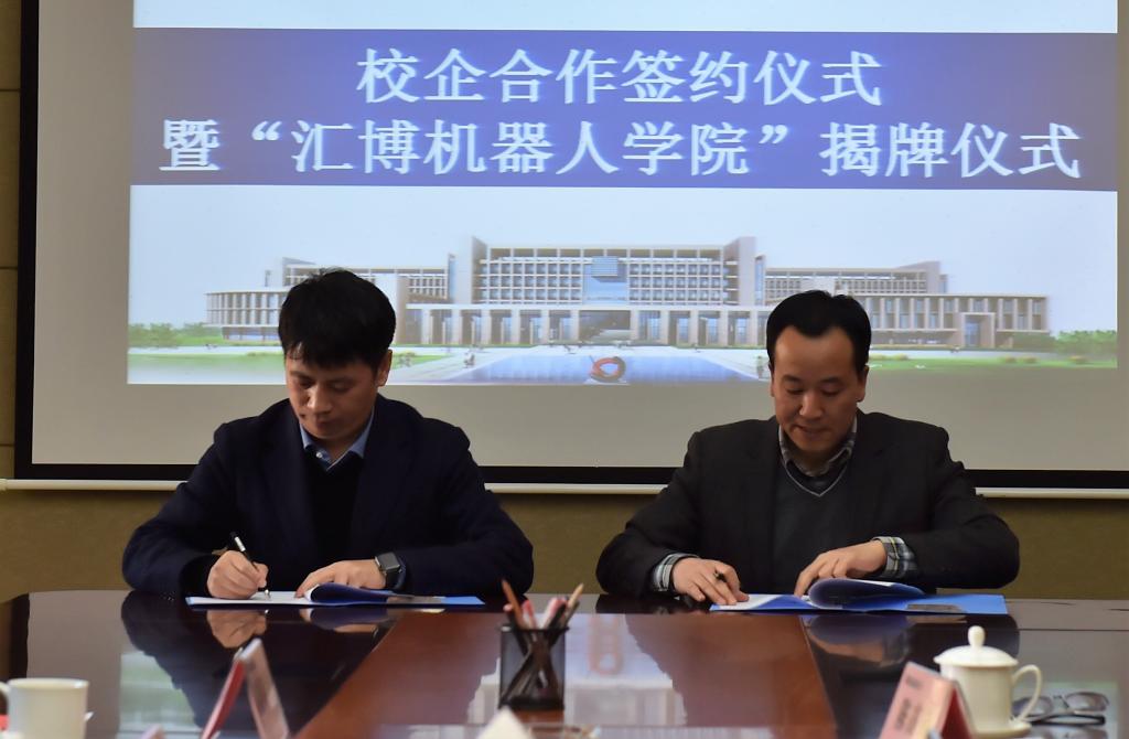 随后,王周锁、王振华共同为“汇博机器人学院(杨凌分院)”揭牌,张永良、王振华分别代表校企双方签订了《杨凌职业技术学院—江苏汇博机器人技术股份有限公司战略合作协议》。根据协议,双方将以“合作办学、合作育人、合作就业、合作发展”为主线,遵循“资源共享、优势互补、合作共赢、协同发展”的原则,在人才培养、员工培训、实习就业和技术服务等方面开展合作。