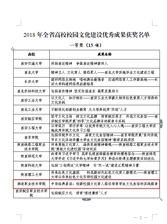 近日,中共陕西省委教育工委公布了2018年全省高校校园文化建设优秀成果获奖名单,由我院申报的《中华经典晨读:创新校园文化育人路径培育学生文化自信的实践探索》获一等奖。