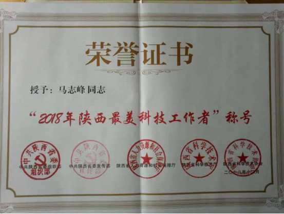 马志峰教授荣获“陕西省最美科技工作者”称号