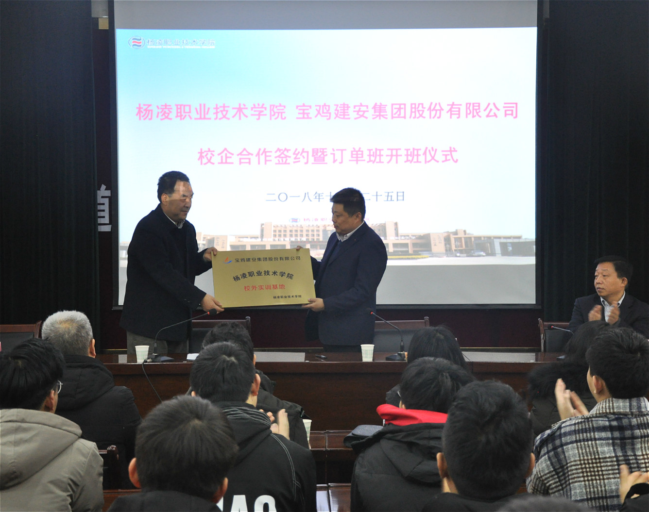 12月25日,学院与宝鸡建安集团股份有限公司在南校区水韵楼二楼报告厅举行了校企合作签约暨订单班开班仪式。宝鸡建安集团股份有限公司总工程师吴兵,学院党委委员、教务处处长张宏辉,建筑工程分院主要负责人以及订单班全体学生80余人参加了开班仪式。