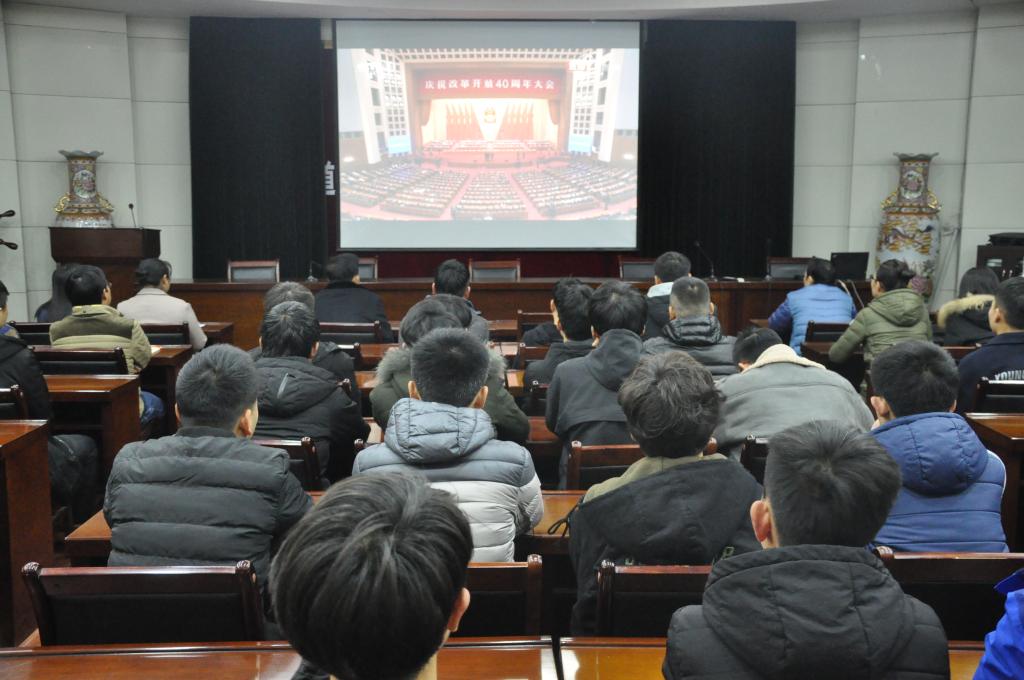院党委理论学习中心组成员、院机关所有职工在思辩堂收看庆祝改革开放40周年大会