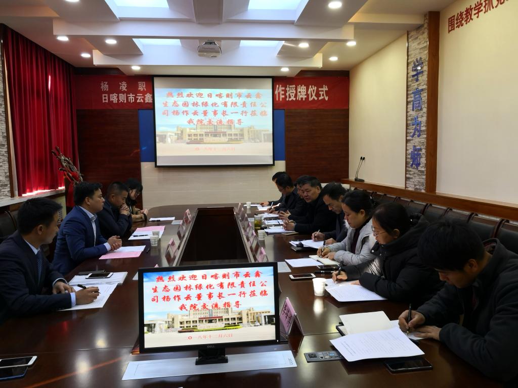 揭牌仪式上,生态分院主要负责人与杨作云共同为“西宁云鑫集团人才培养基地”、“ 日喀则市云鑫生态园林绿化有限公司人才培养基地”揭牌。随后,双方关于荒山造林、城市绿化、苗木繁育、苗圃基地建设等业务进行了交流、沟通和研讨,初步决定12月下旬在生态分院为集团技术人员进行培训。双方希望,通过此次校企合作,发挥校企各自优势,在人才培养、科学研究和服务社会等方面进行深度合作,最终实现校企共同发展。