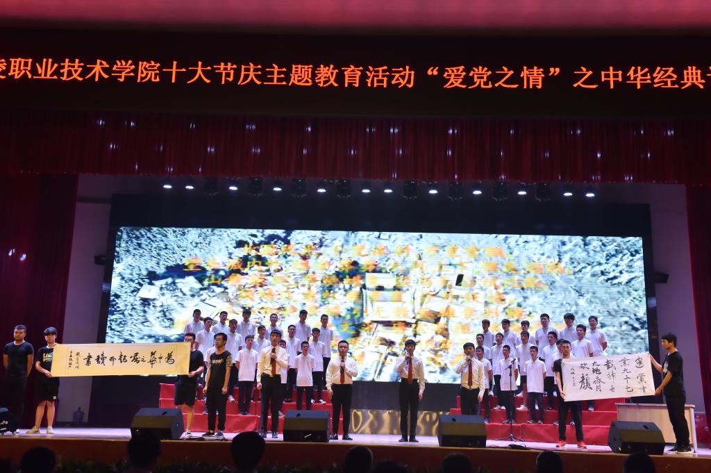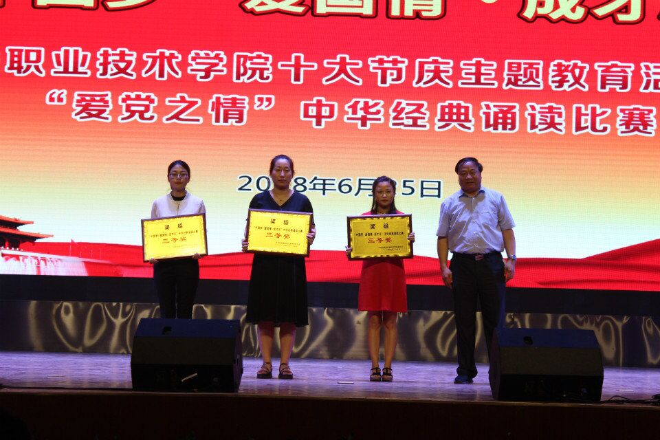 为庆祝中国共产党成立97周年,6月15日,我院举行“十大节庆”主题教育活动“爱党之情”之中华经典诵读大赛,传承中华优秀传统文化,培育和践行社会主义核心价值观。党委书记赵曼、院长王周锁、党委副书记任得元出席,党委委员祝战斌、处室(中心)负责人、分院党总支书记以及700余名师生代表参加了活动。