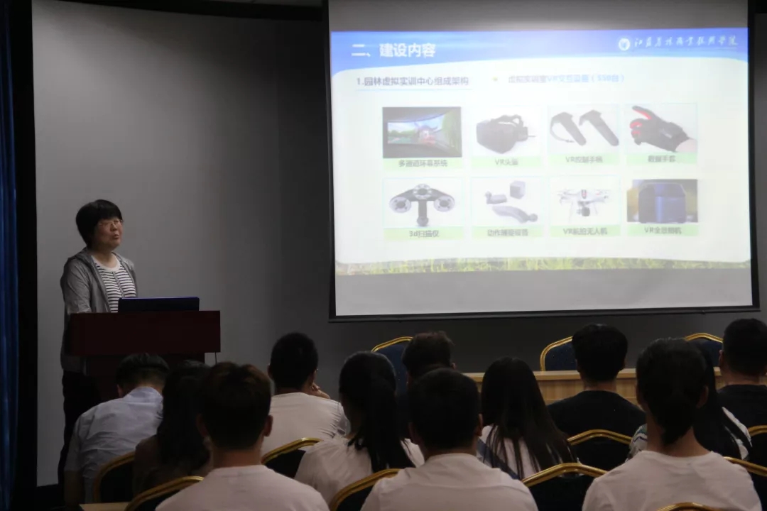 刘玉华就当前我国园林专业的发展现状进行了详细说明,并介绍了举办国家园林技能大赛得评分标准以及需要增设的VR园林实验室。