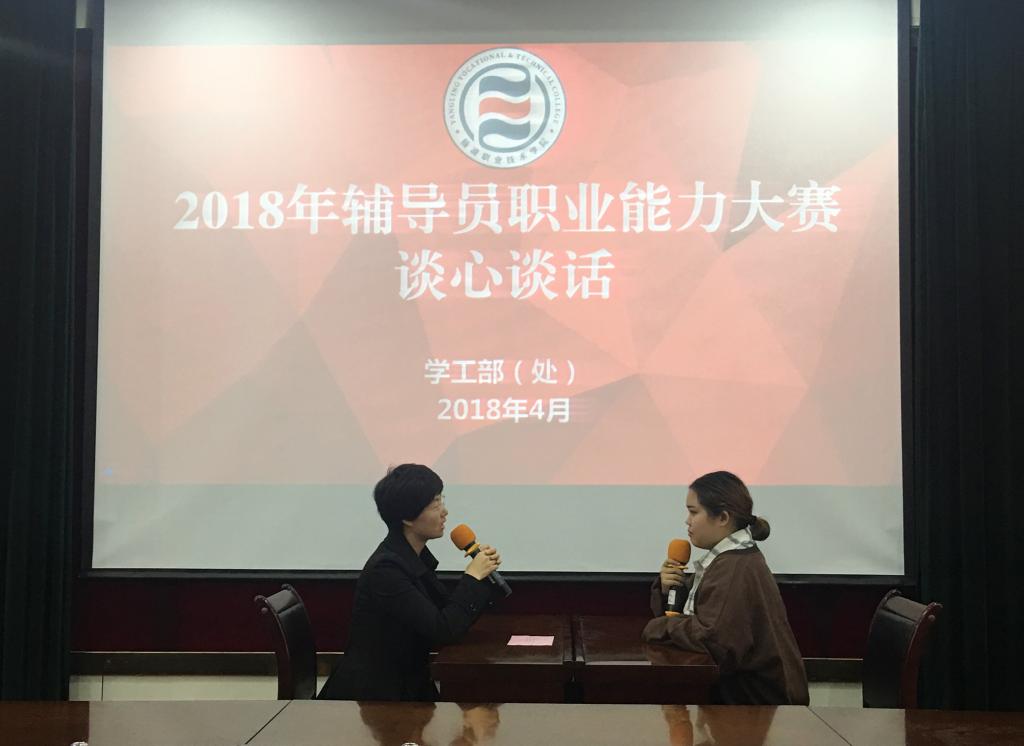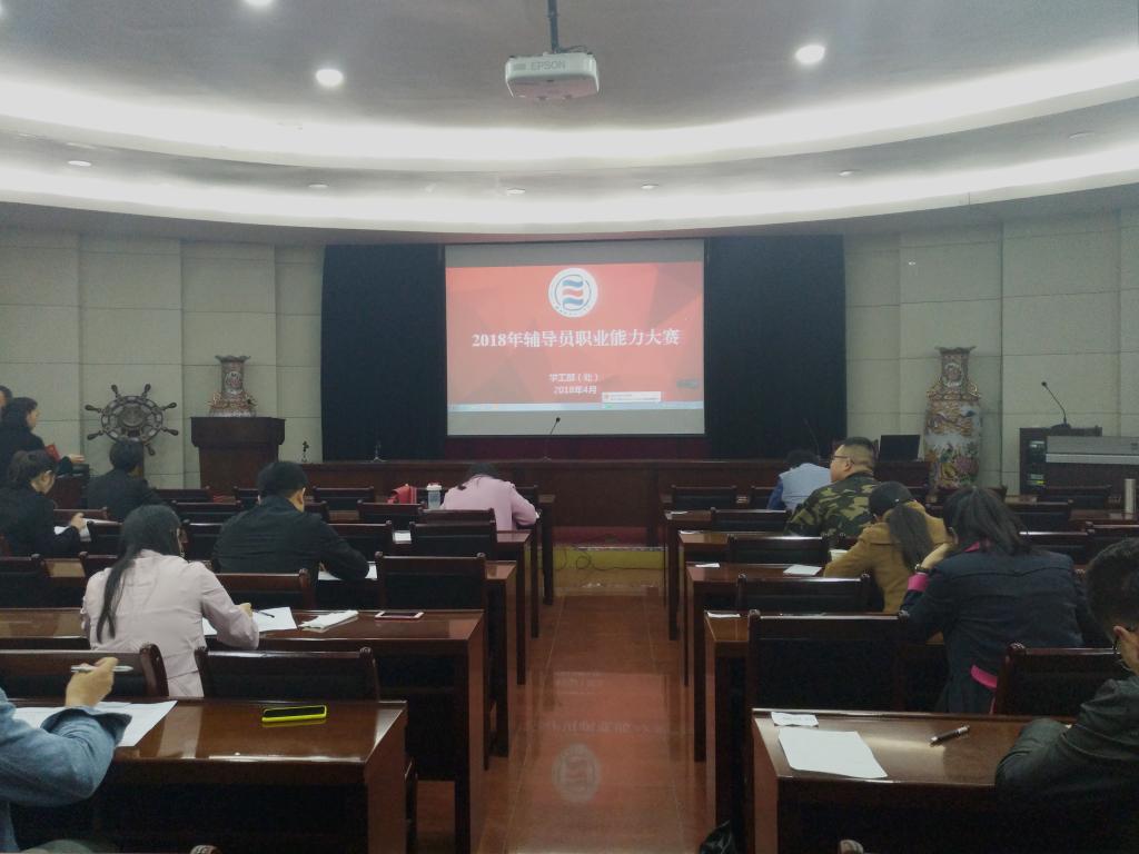 比赛项目参照陕西省辅导员职业能力大赛项目内容,分为笔试(包括基础知识测试、博文写作)、案例分析、主题演讲、谈心谈话等四个环节。题目涵盖了政治理论、党团建设、日常教育管理、心理健康教育、评奖评优、学生资助、就业指导等多个方面。参赛辅导员结合自身工作,紧扣主题,认真分析,阐述了自己观点,展示了工作才能。