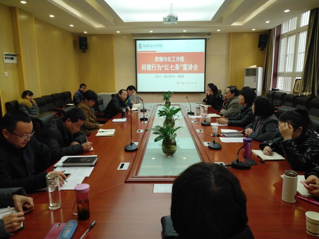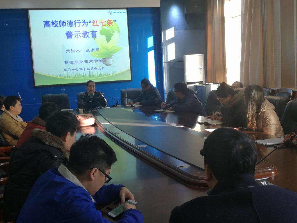 会上,宣讲人集中通报了全国几起违反师德行为的典型案例,希望全体教职工引以为戒,要求大家要严格按照师德行为“红七条”规范自己的言行,努力建设清正廉洁的师德师风,真正做到学高为师、身正为范,为培养社会主义合格建设者和可靠接班人和把我院建成“国内一流高职名校”而不懈努力。