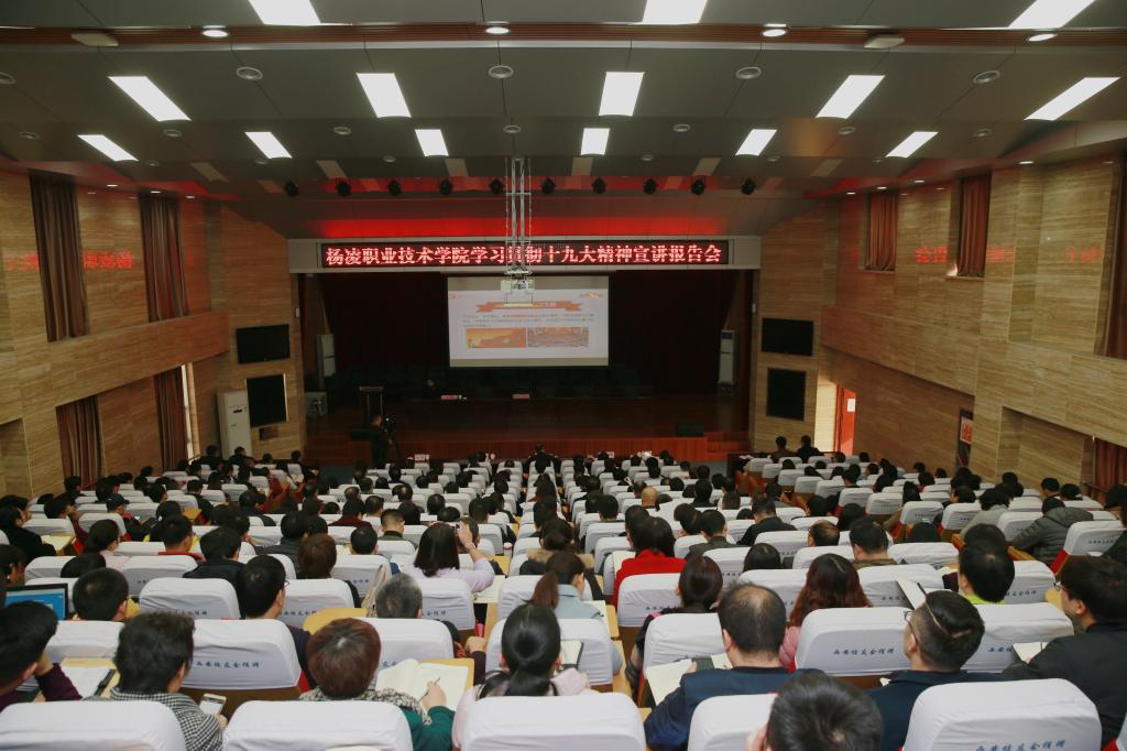 11月27日下午,我院举行党的十九大精神宣讲报告会,邀请省专家学者宣讲团成员、西北农林科技大学马克思主义学院院长邓谨为广大师生作题为《新时代的政治宣言和行动纲领》的辅导报告。学院党委书记赵曼,党委副书记、院长王周锁,纪委书记刘粉莲聆听了报告。报告会由党委副书记任得元主持。
