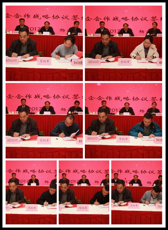 会上,张宏辉代表我院与陕西省农业产业化龙头企业协会、陕西景盛肥业集团有限公司、咸阳新阳光农副产品有限公司、铜川市三联果业有限公司、陕西锦泰魔芋产业发展有限公司、陕西大地种业有限公司、子洲县富华油脂工业有限责任公司、陕西新天地农业科技有限公司八家企业签定校企战略合作协议,建立了更加长效、稳定的合作关系。