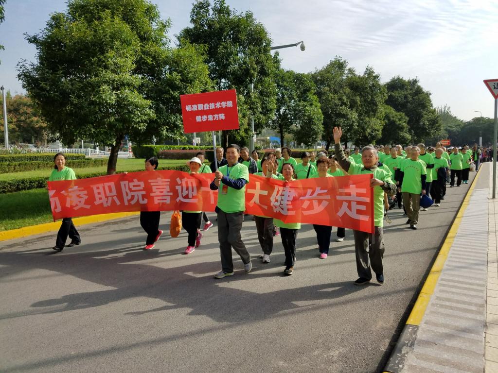 9月28日,我院百余名退休职工排着整齐的方阵,集聚杨凌国际会展中心广场,参加示范区老体协组织的“喜迎十九大,健康陕西我先行,百万老人健步走”活动。