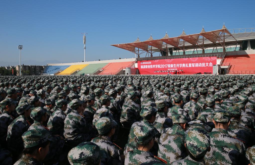 党委副书记任得元、副院长张永良、纪委书记刘粉莲,各分院(部)院长(主任)、党总支书记和处室负责人,各分院学工办主任、辅导员、新生班主任、2017级新生等7000余人参加开学典礼暨军训动员大会。