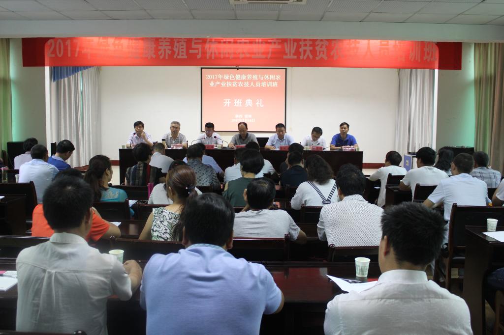 7月18日,由我院承办的绿色健康养殖与休闲农业产业扶贫农技人员培训班在汉中市留坝县开班,陕西省农业厅科教处处长戴建昌,汉中市农业局总农艺师杨全永,留坝县委副书记贾晓伟、副县长周昊明、副县长陈志敏等出席了开班典礼。来自留坝县、凤县、太白县的基层农技推广人员共计102人参加了本次培训。