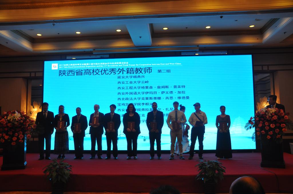 2017丝绸之路教育合作交流会开幕上,陕西省教育厅厅长王建利向获陕西高校优秀外籍教师的个人颁发了证书。我院外国文教专家Katalin Burgess 女士获陕西高校优秀外籍教师荣誉称号,是陕西高职院校唯一获此荣誉的外籍教师。
