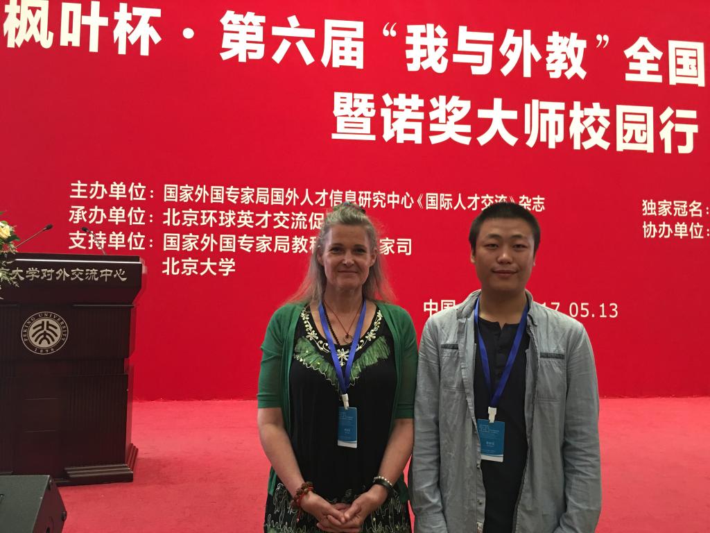 5月13日,“枫叶杯.第六届我与外教全国大赛颁奖典礼暨诺贝尔大学校园行”在北京大学举行,我院外国文教专家Katalin Burgess女士和建工国际班的柳泽林同学参加了颁奖典礼。国家外专局对我院外教和1名学生的“我眼中的中国”摄影作品,以及“我与外教”作品分别颁发了“优秀奖”。本次颁奖仪式和论坛由国家外专局主办,参加本届大会的学校有40多个,外专50多名,学生50 多名。